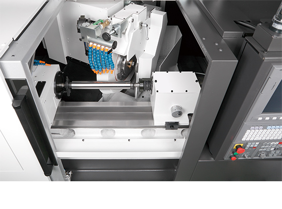 采用砂輪橫移構(gòu)造,實(shí)現(xiàn)空間節(jié)省 砂輪橫移構(gòu)造與工作臺(tái)橫移構(gòu)造相比,需要堅(jiān)固的基礎(chǔ)結(jié)構(gòu)。 OKUMA的高剛性技術(shù)可滿足這些條件,以砂輪橫移構(gòu)造,實(shí)現(xiàn)了緊湊機(jī)身。 ![]() |